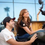 It’s not every day you see Bushra Rozza and Ahmed Magdy stepping into biker boots and revving up on a classic Indian Motorcycle — but that’s exactly what happened at Motorsports HUB.