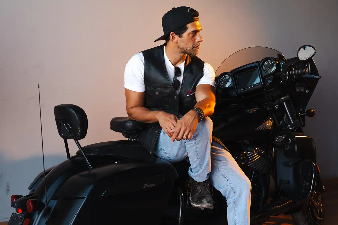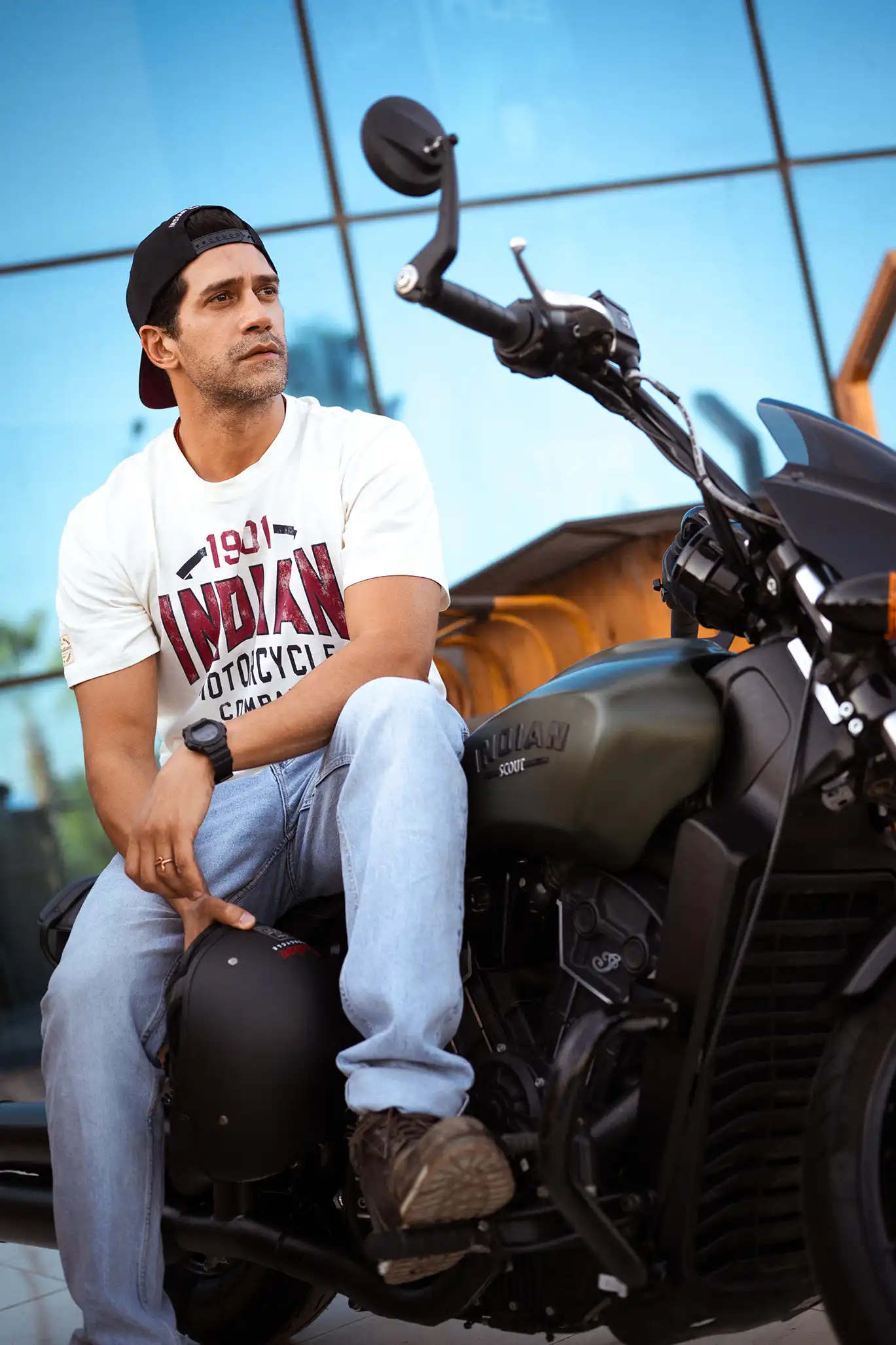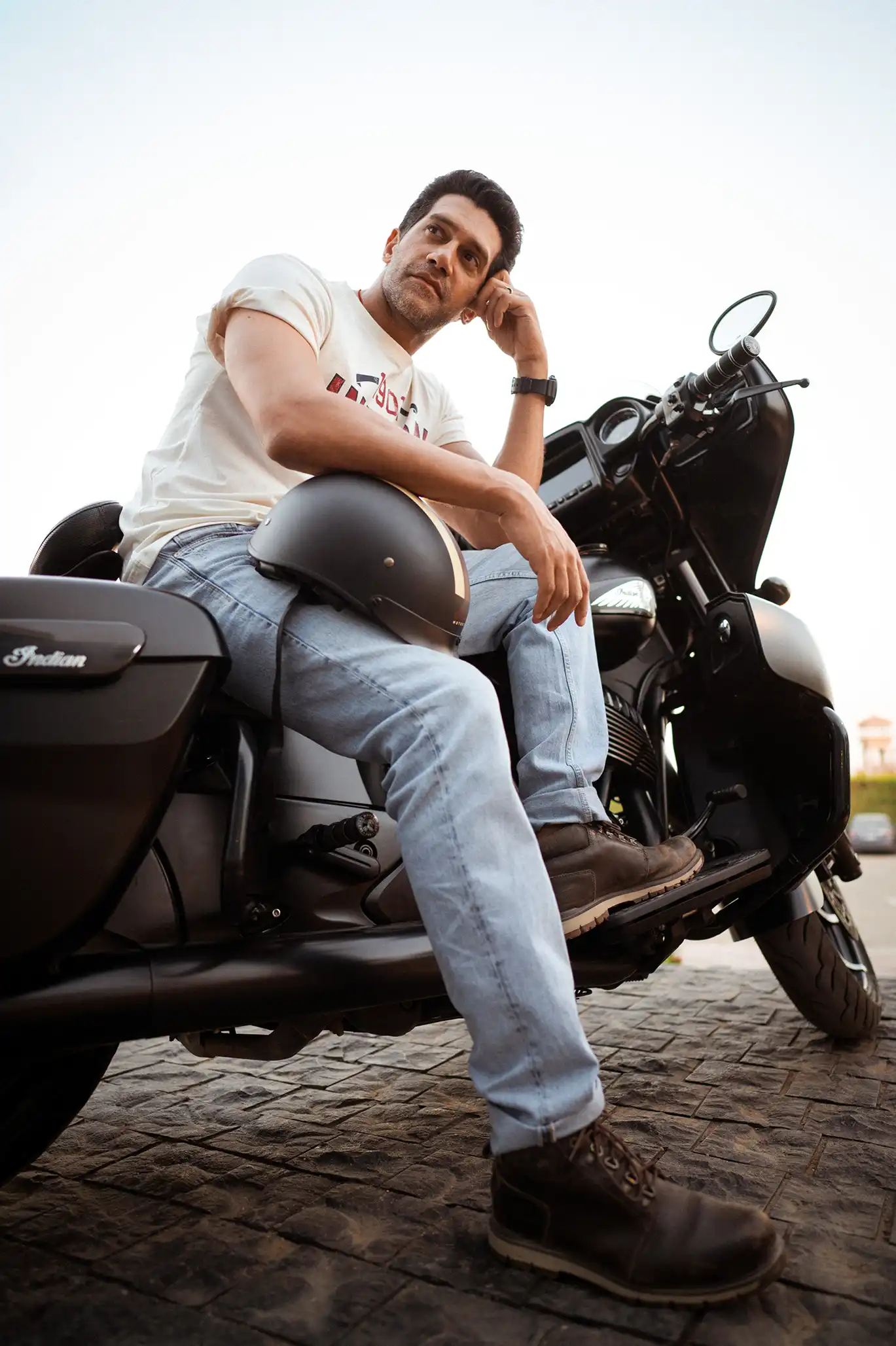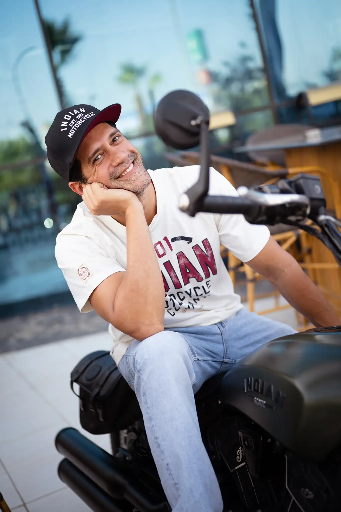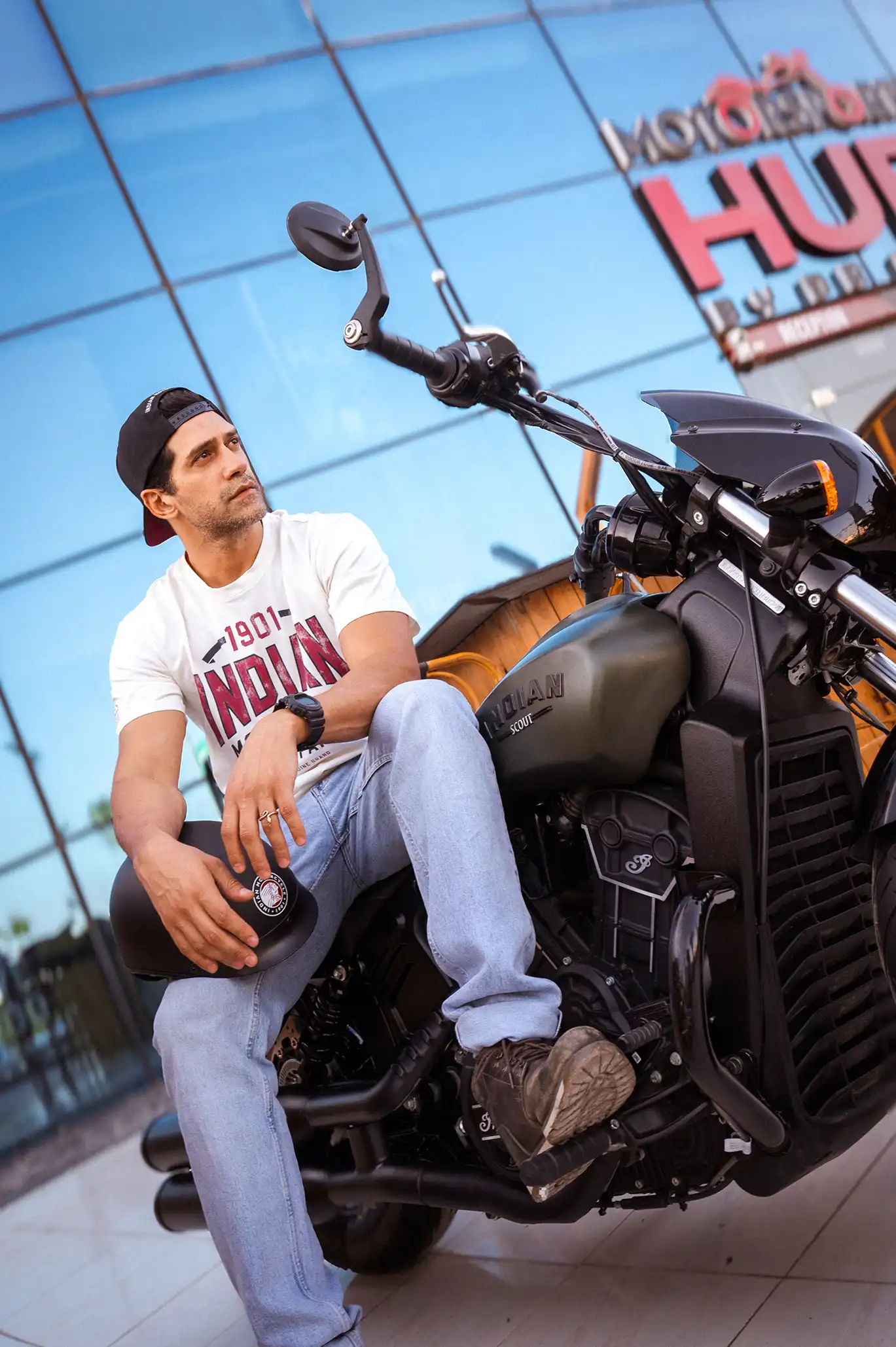 Located in Cairo, Motorsports HUB set the perfect scene. With Indian Motorcycles parked in the foreground and wide-open textures in the background, it became more than just a location — it added mood and motion to every shot.