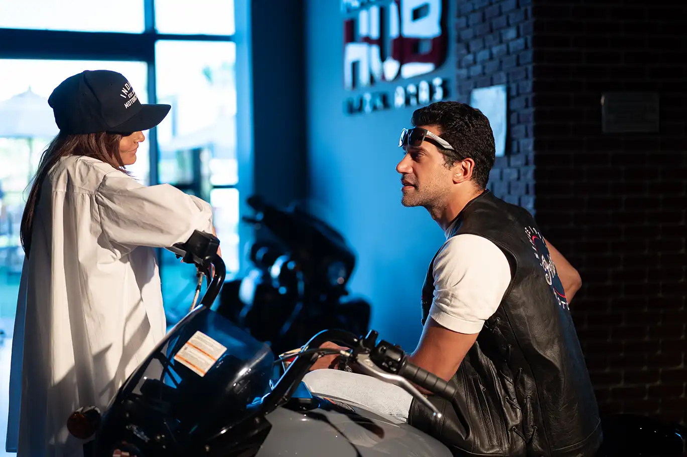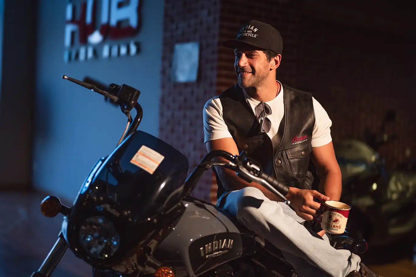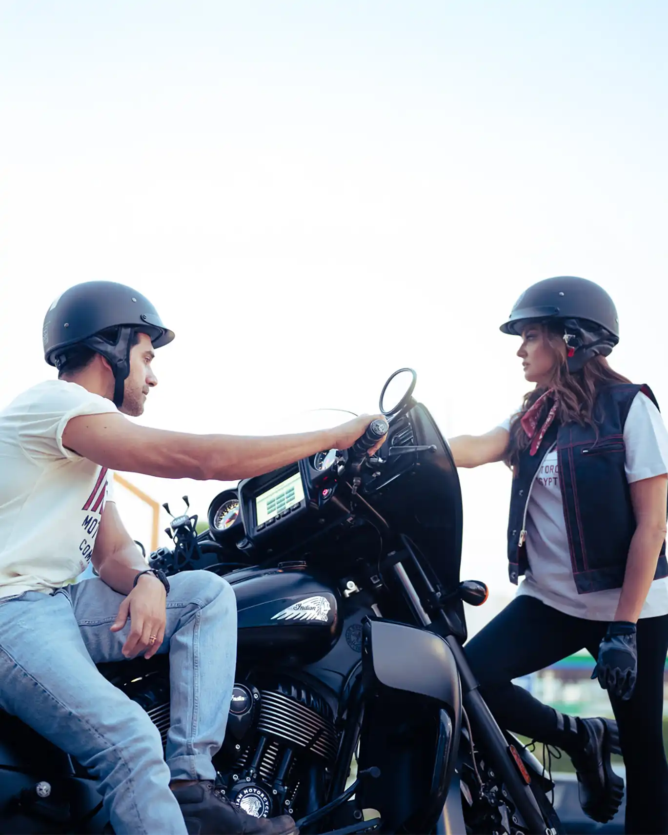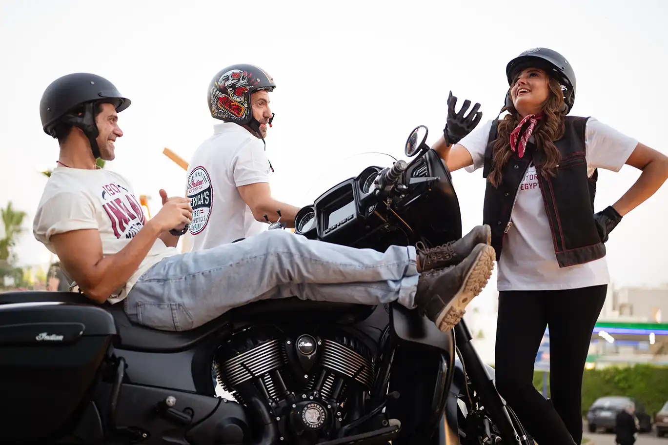 It’s not every day you see Bushra Rozza and Ahmed Magdy stepping into biker boots and revving up on a classic Indian Motorcycle — but that’s exactly what happened at Motorsports HUB.