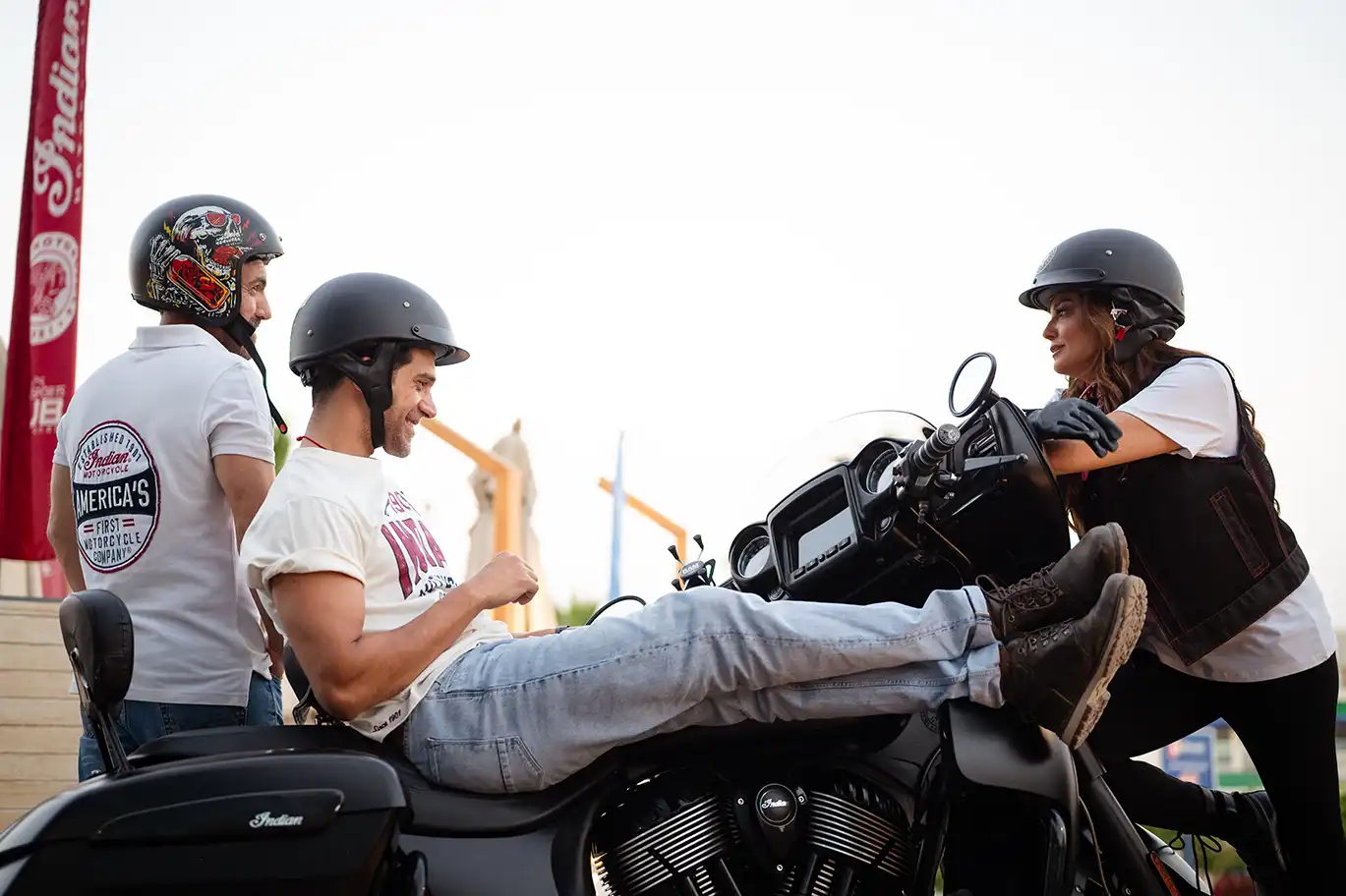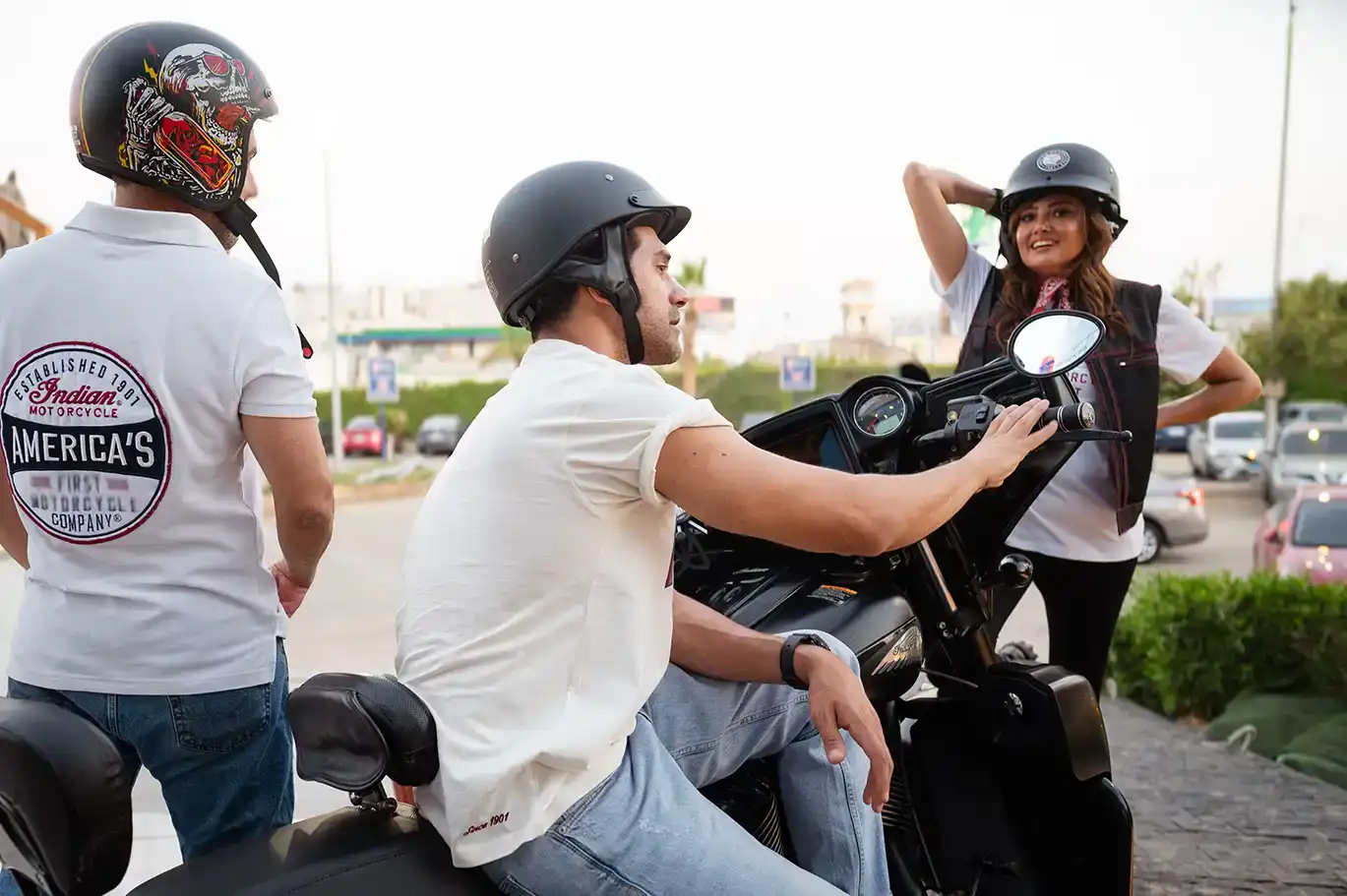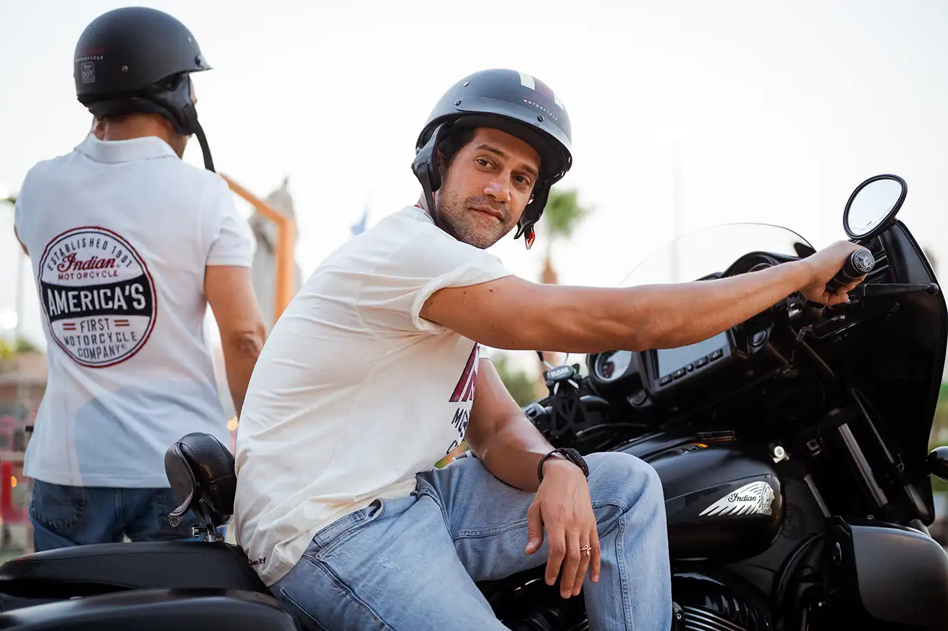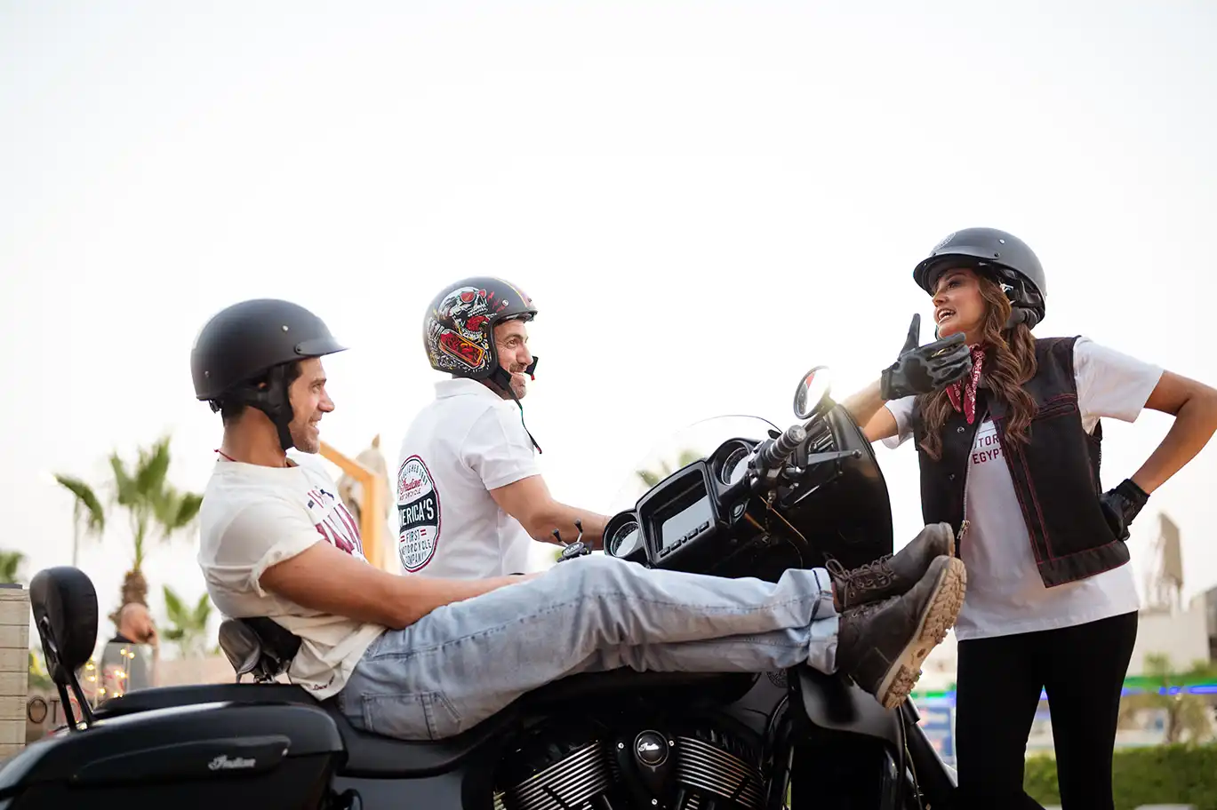 It’s not every day you see Bushra Rozza and Ahmed Magdy stepping into biker boots and revving up on a classic Indian Motorcycle — but that’s exactly what happened at Motorsports HUB.
