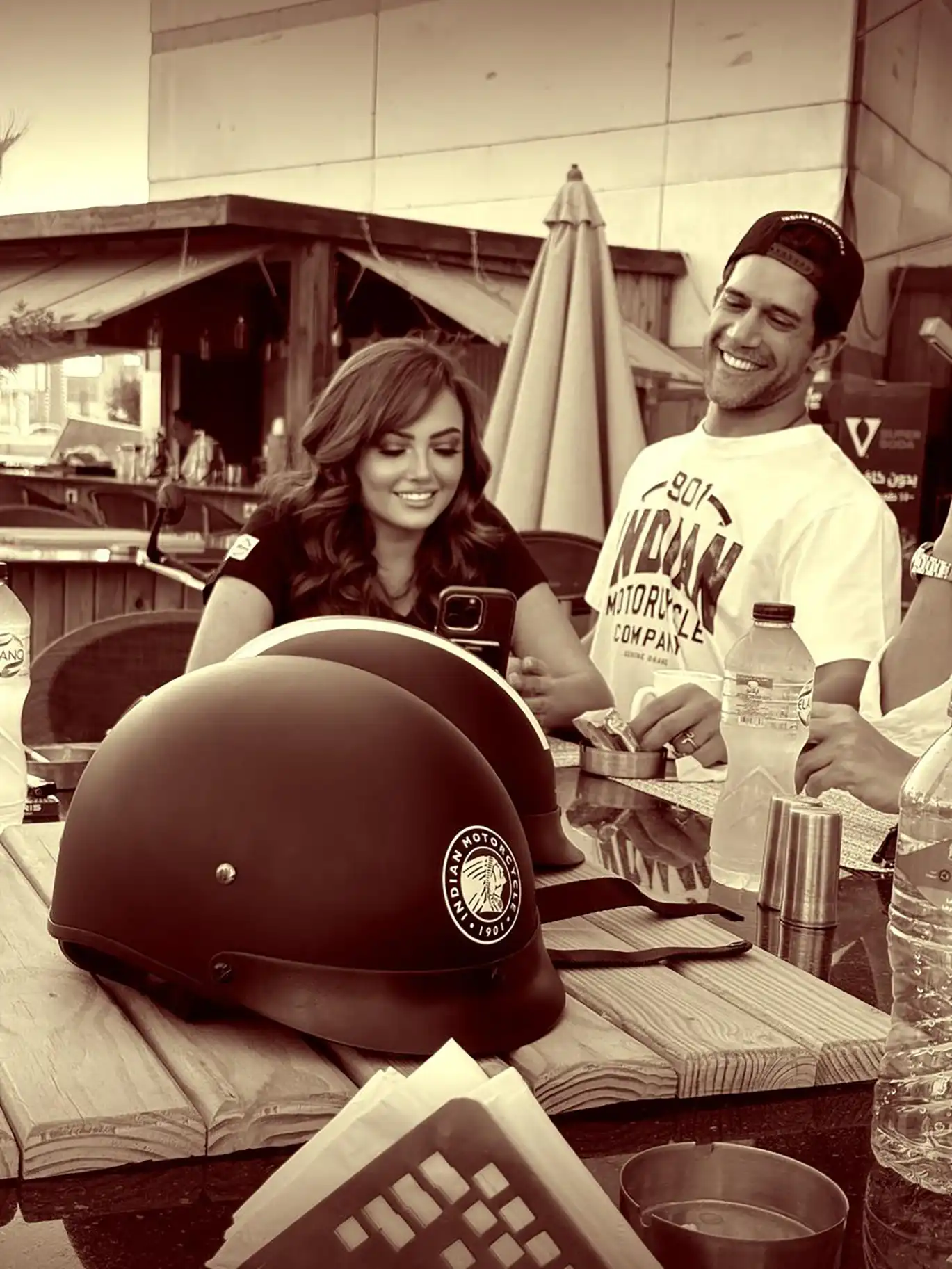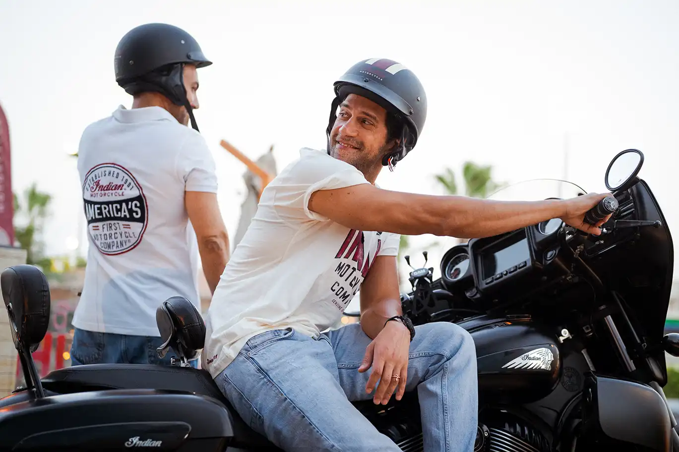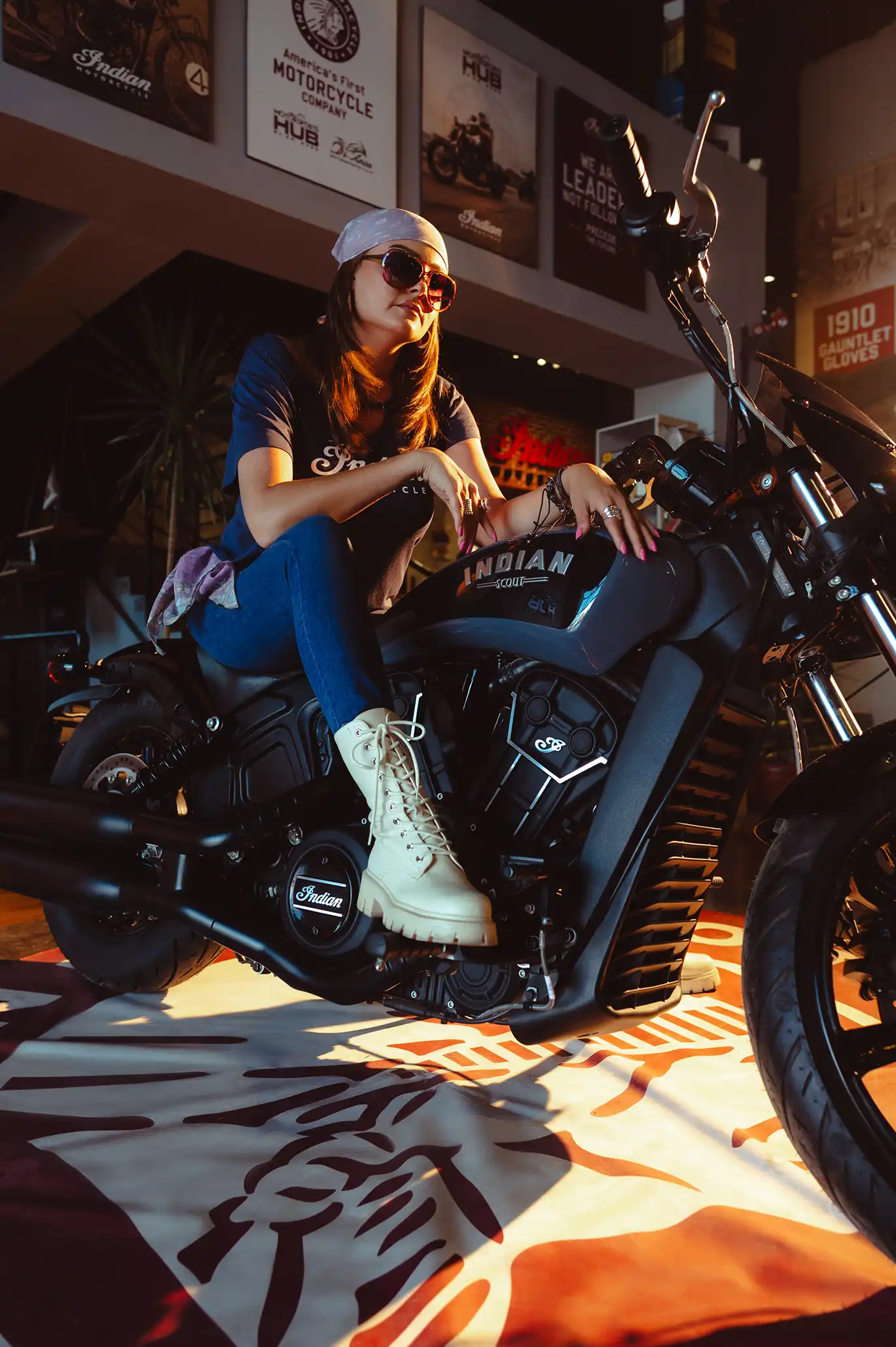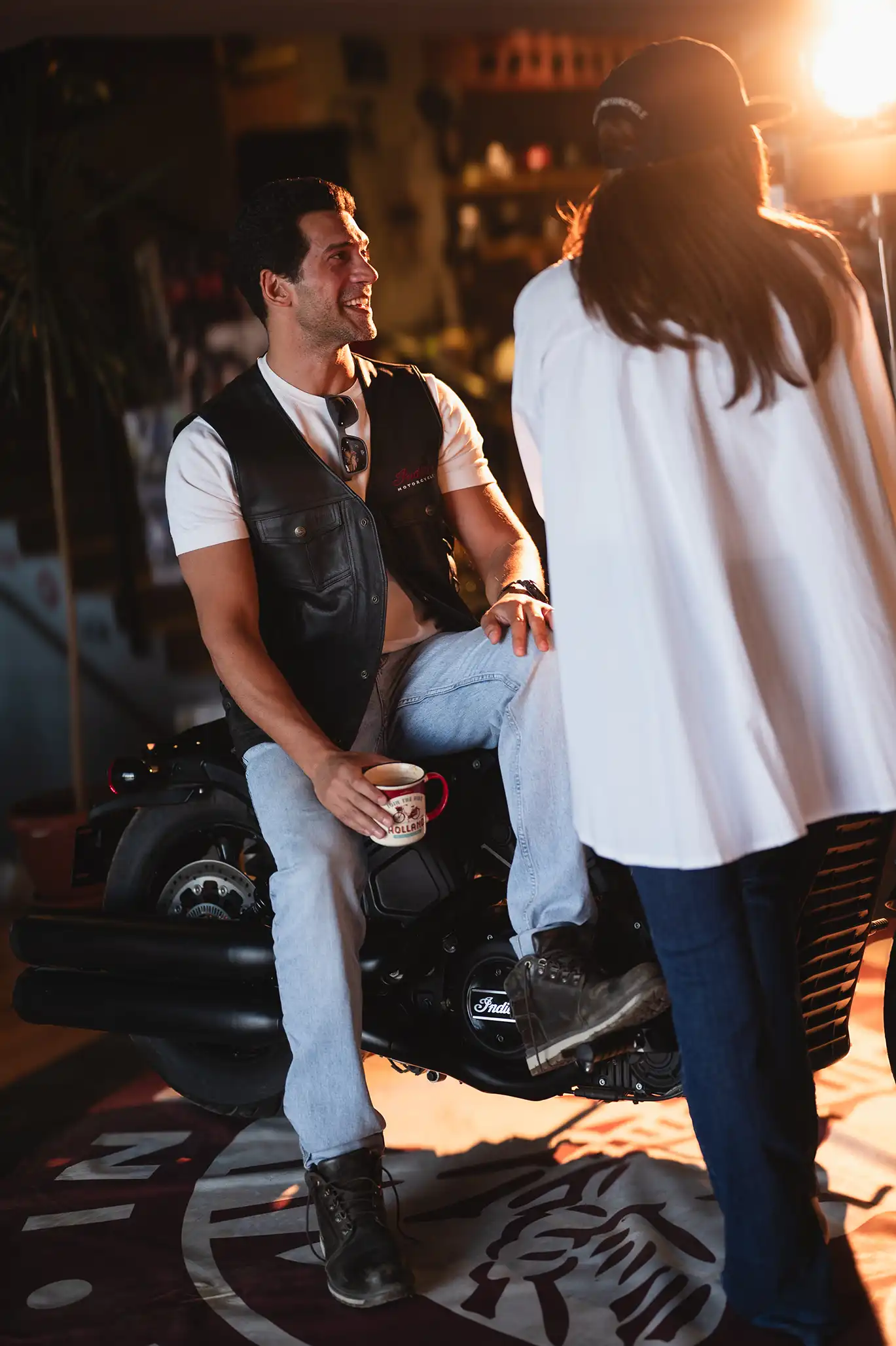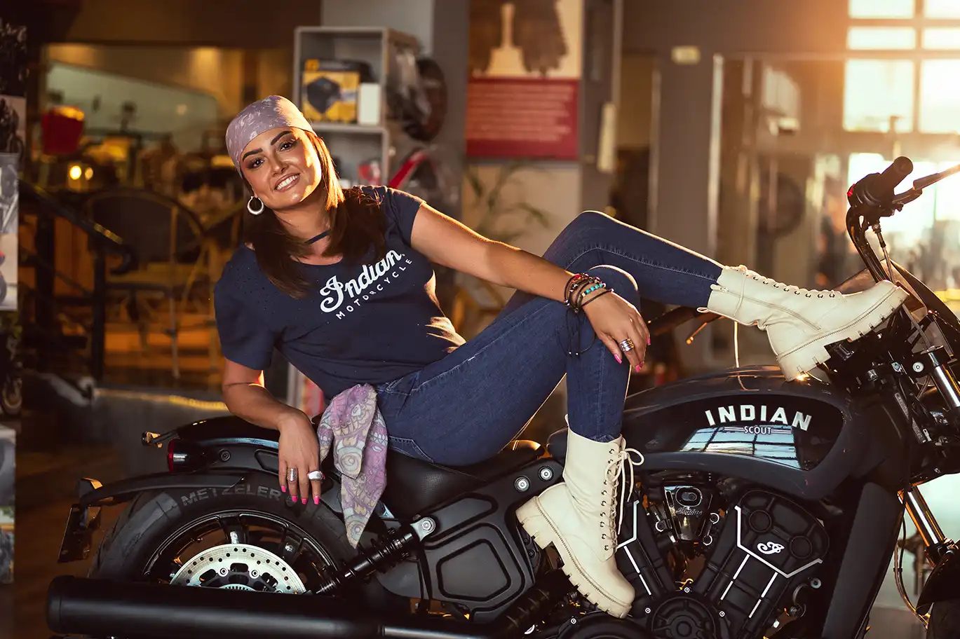 It’s not every day you see Bushra Rozza and Ahmed Magdy stepping into biker boots and revving up on a classic Indian Motorcycle — but that’s exactly what happened at Motorsports HUB.