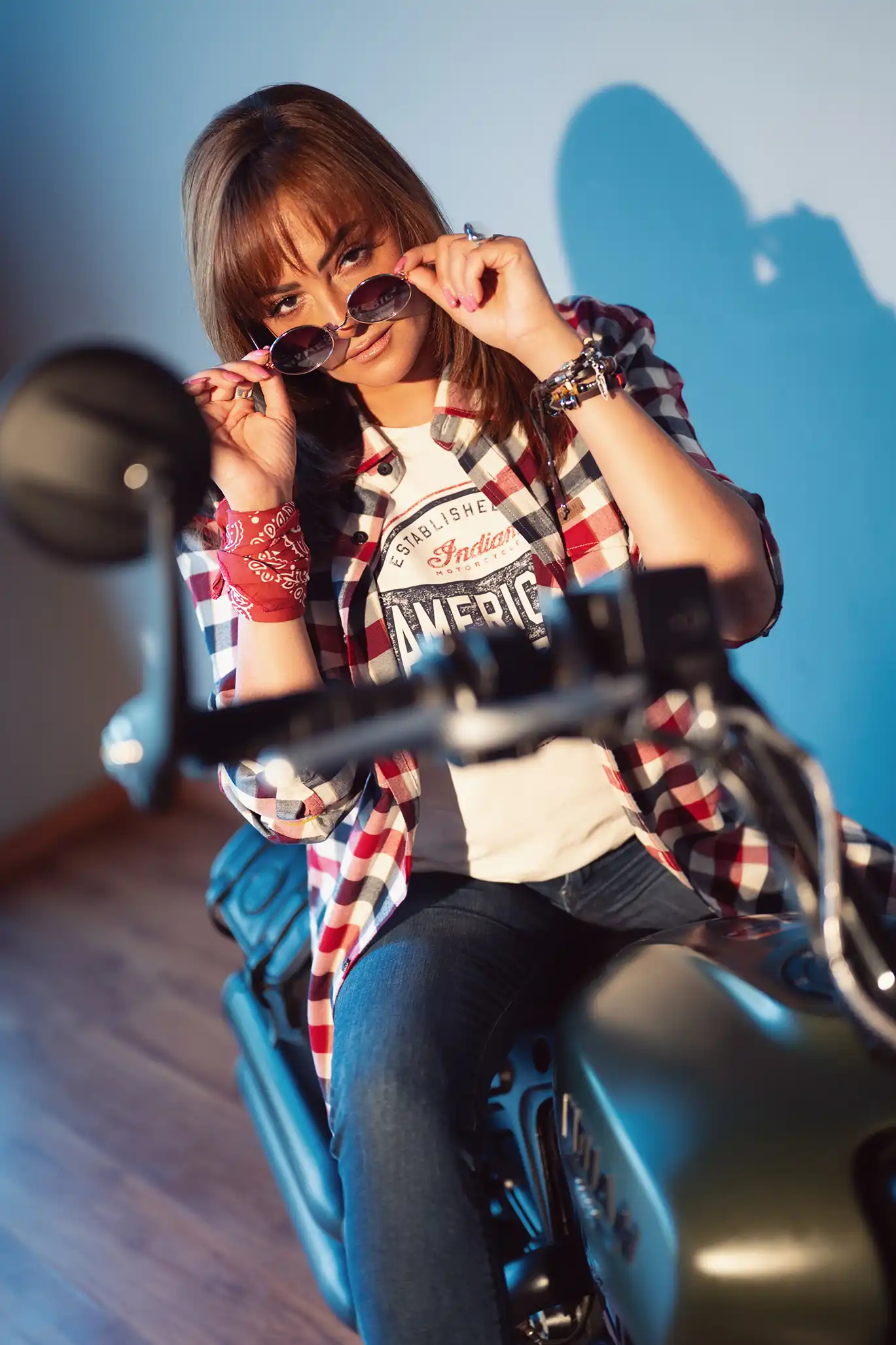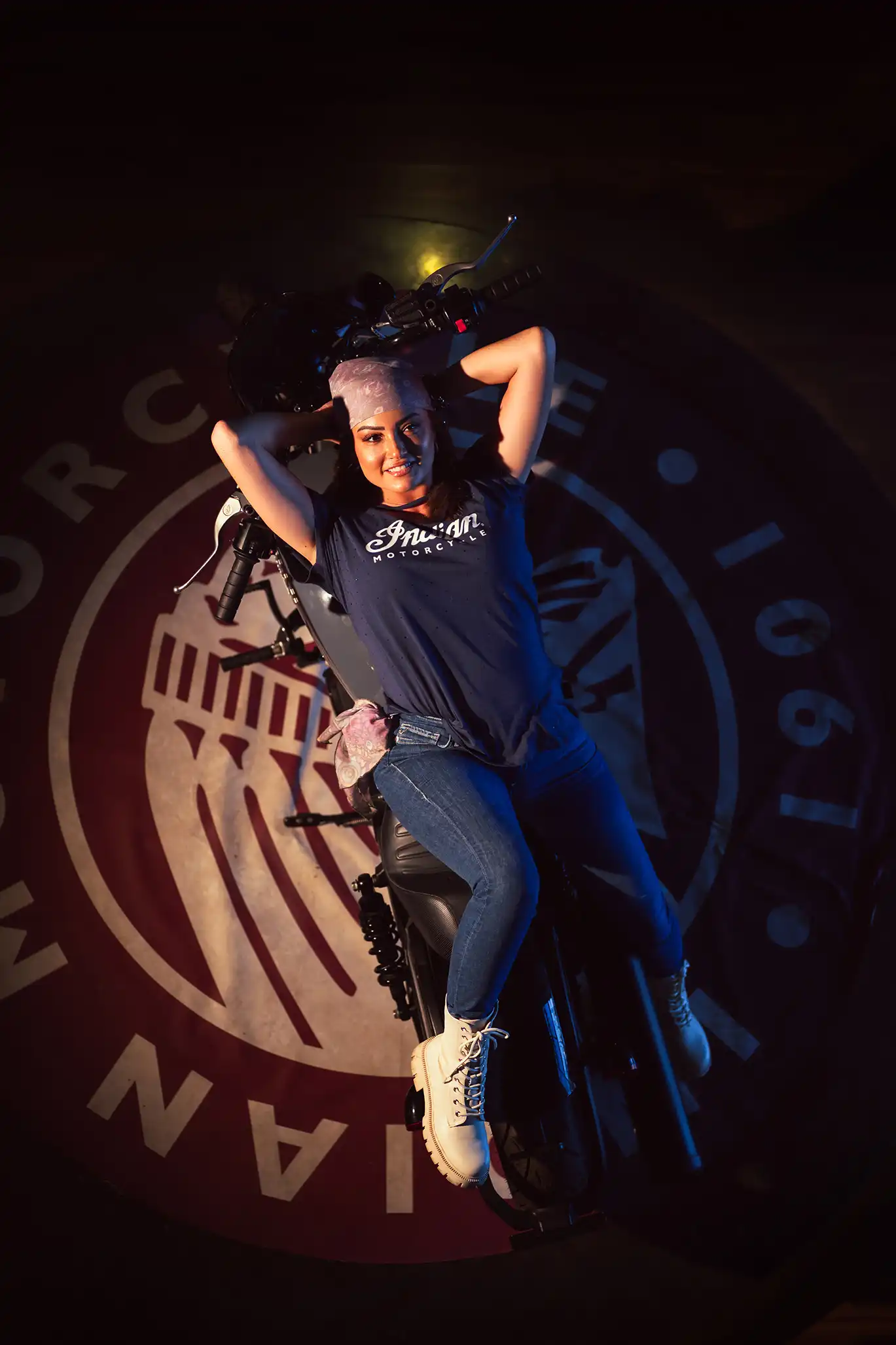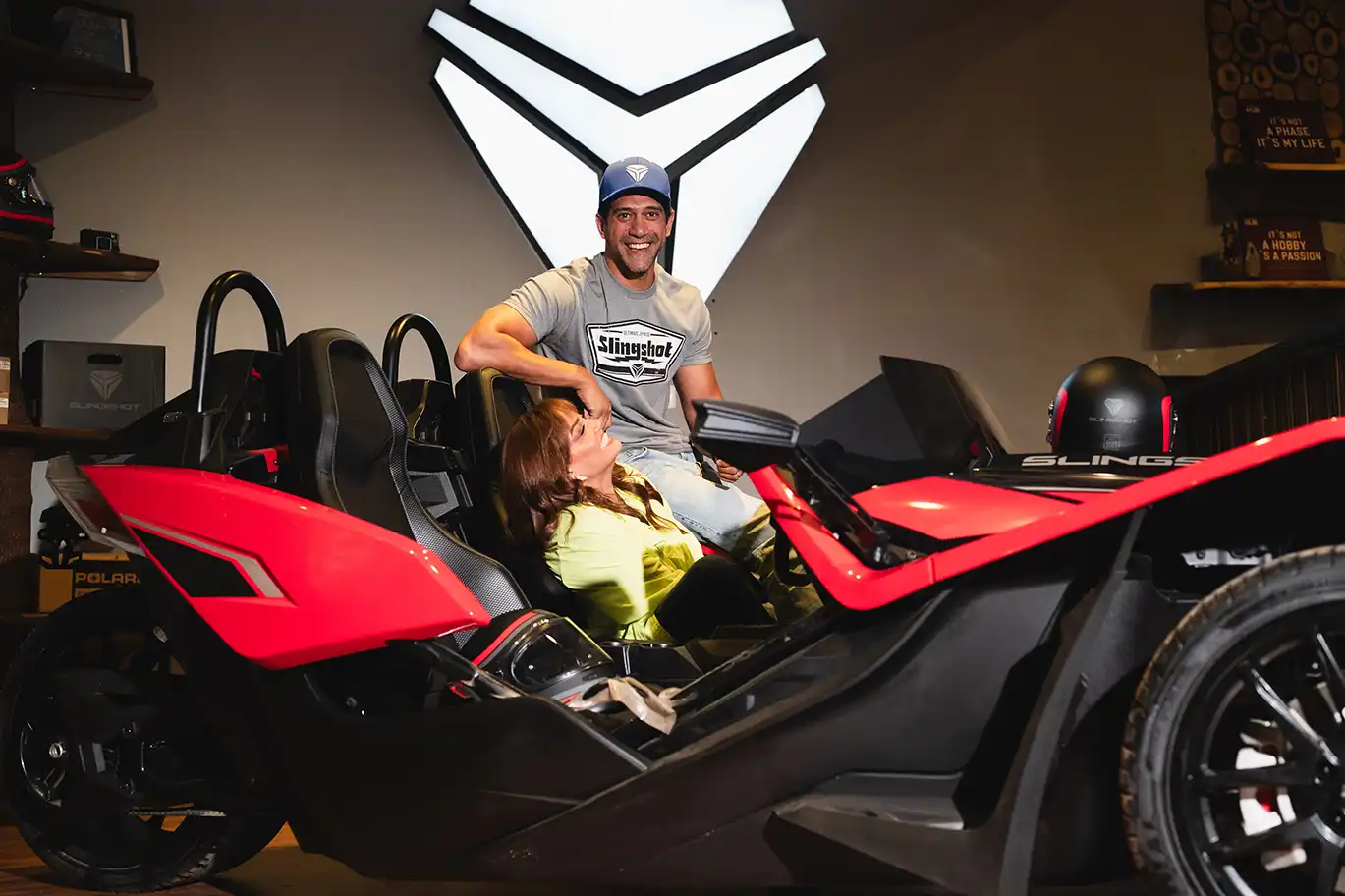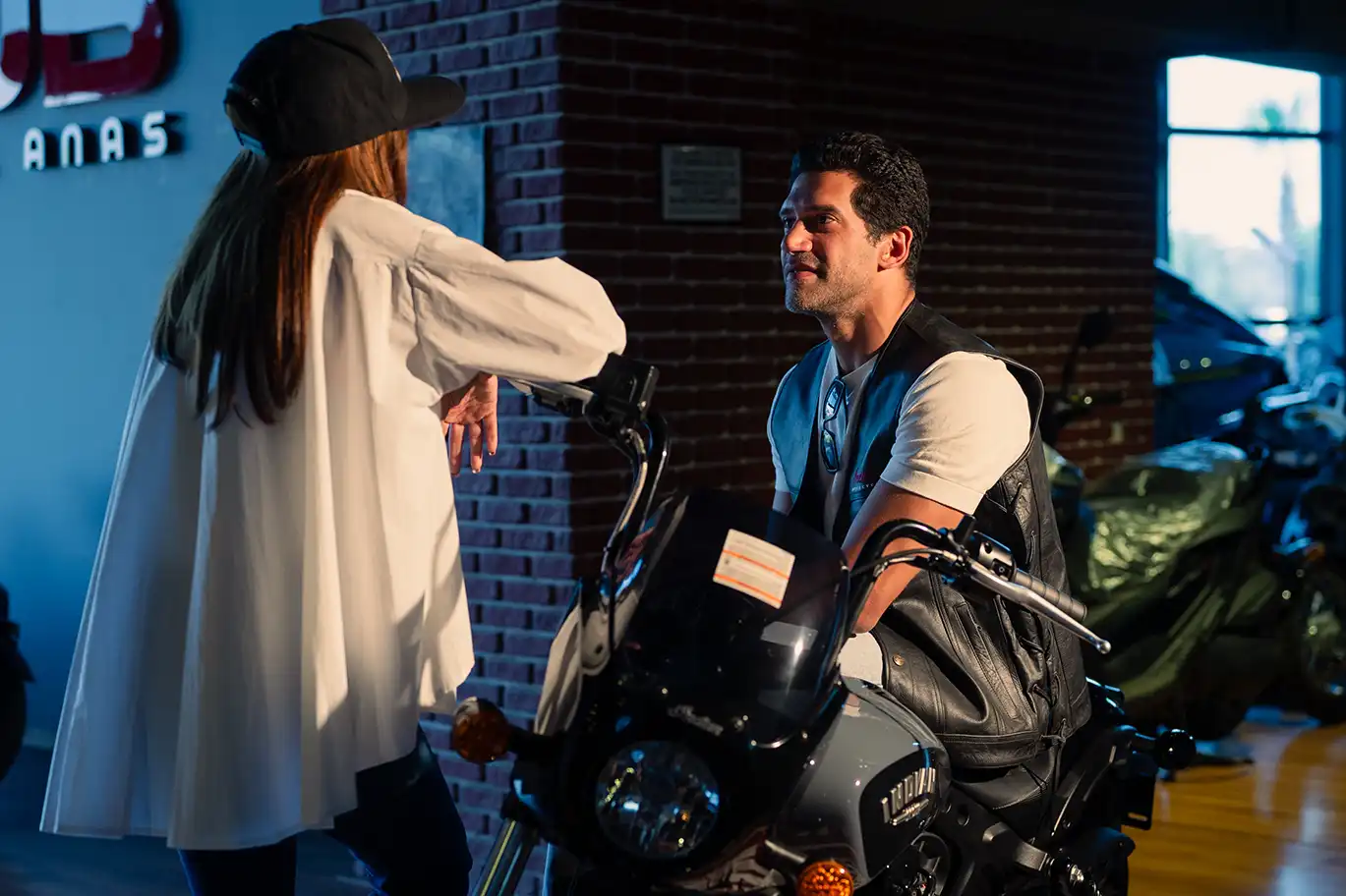 It’s not every day you see Bushra Rozza and Ahmed Magdy stepping into biker boots and revving up on a classic Indian Motorcycle — but that’s exactly what happened at Motorsports HUB.