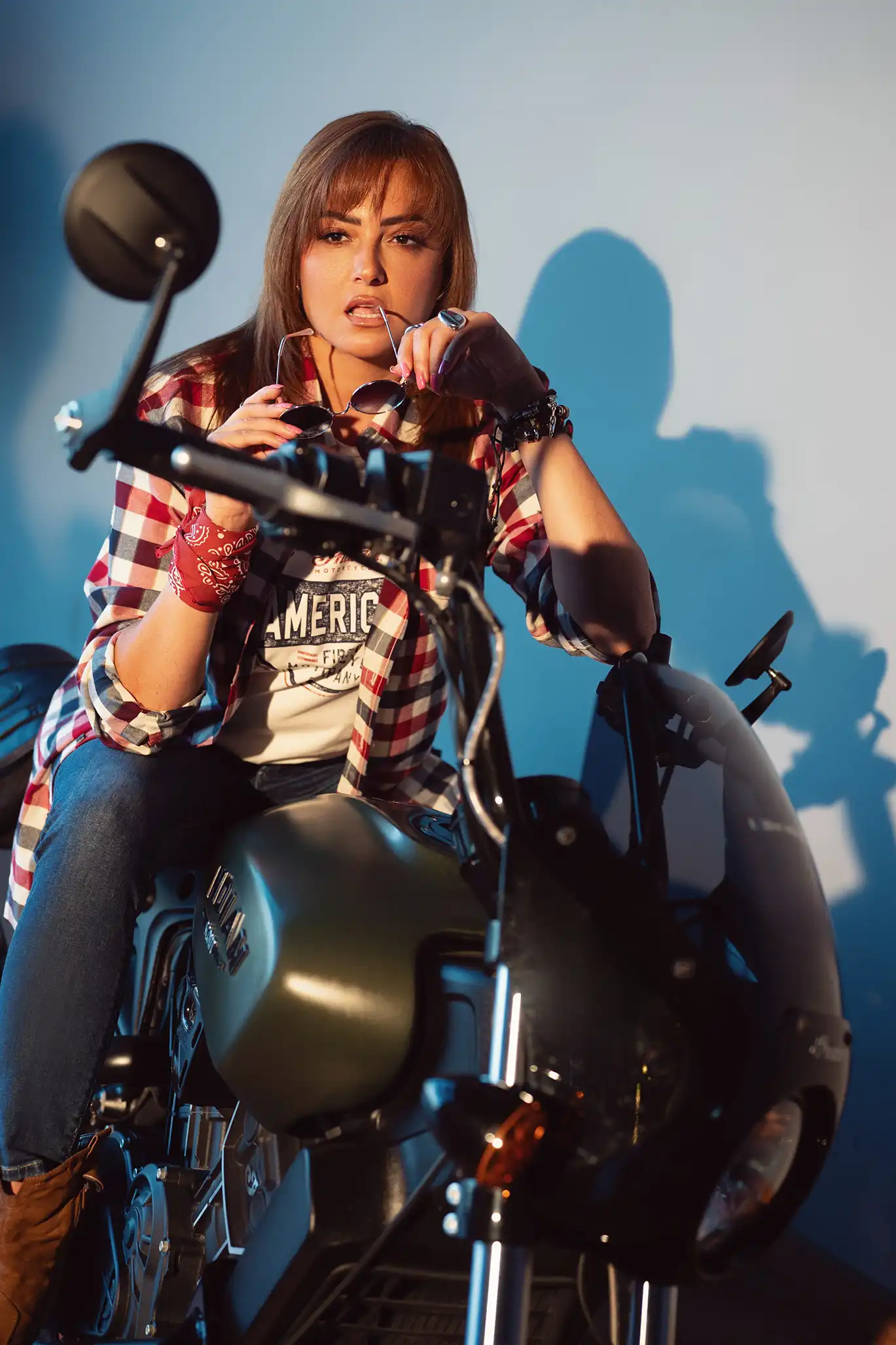 Set against a backdrop of steel, chrome, and desert light, the two stars brought charisma, attitude, and effortless style to an environment that felt both cinematic and grounded. Whether captured mid-stride beside the bikes or locked in a gaze against the grit of the HUB’s open terrain, every frame told a story of strength, confidence, and movement.